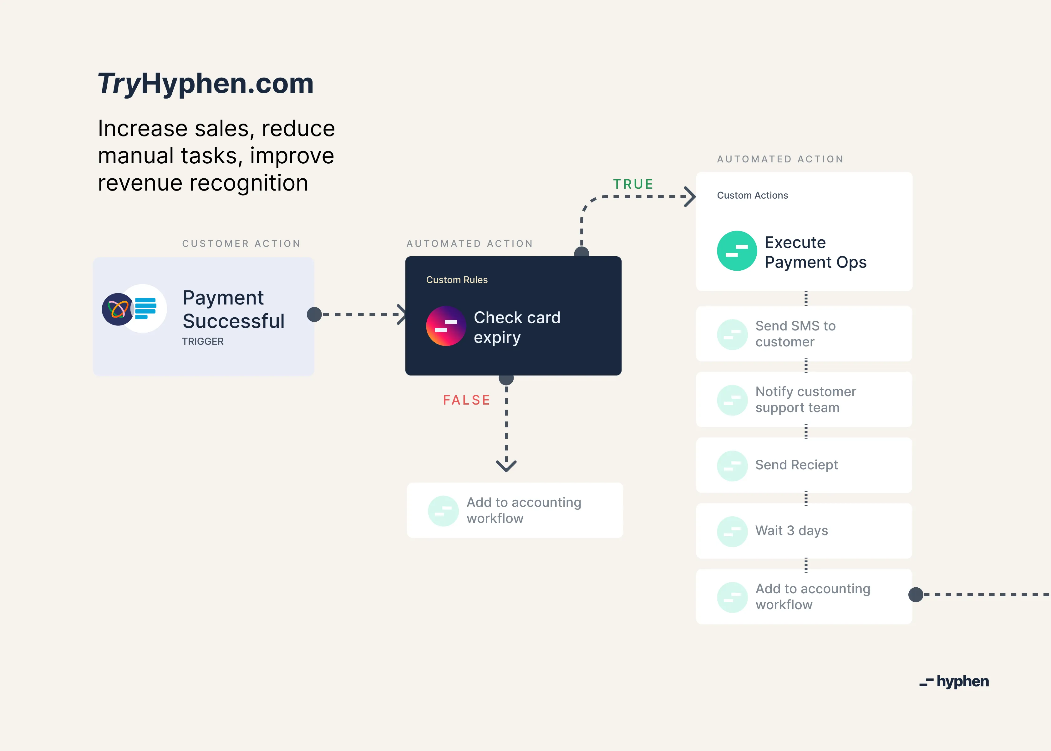 Hyphen is the easiest way to convert multi-step payment and finance tasks into single automated flows that works your way